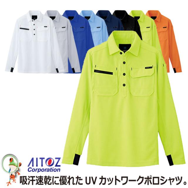 AITOZ アイトス AZ-10608 長袖ポロシャツ【SS~LL】制電 ワークポロシャツ 帯電防止 吸汗 速乾 消臭 UVカット 防縮 透け防止 男女兼用