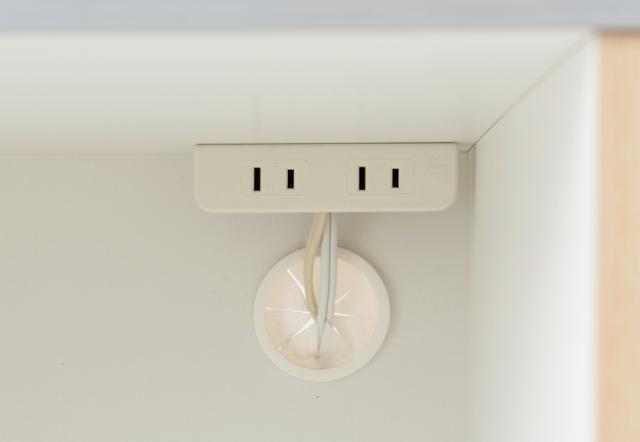 天板とオープン部の2ヶ所に2口コンセントが付いているので、配線を気にせず家電を設置することができます。
