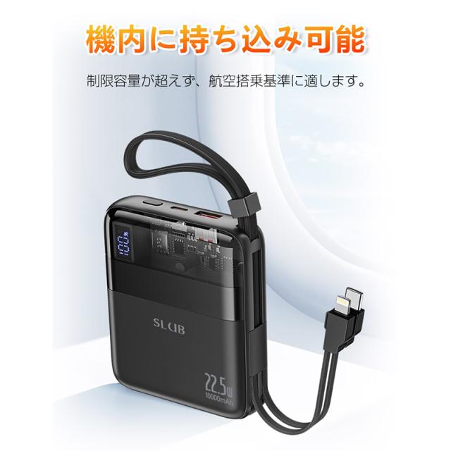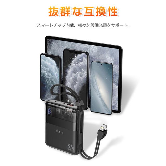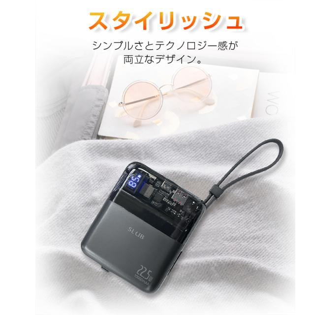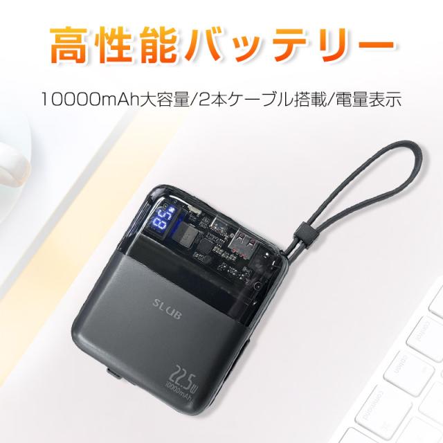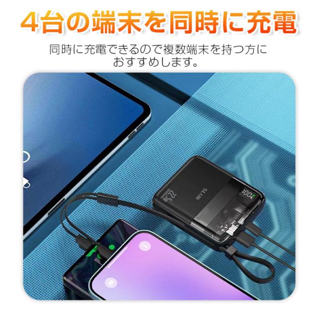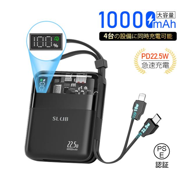 モバイルバッテリー 10000mAh 大容量 ケーブル不要 4台同時充電 22.5W出力 18W入力 急速充電 PSE認証済み 残電量表示 Type-C入力 【PL保険加入済み製品・安心】