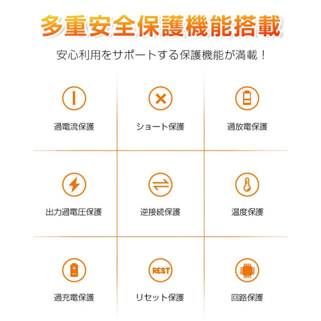 2.過充電・過放電・ショート保護などの多重安全保護機能搭載。