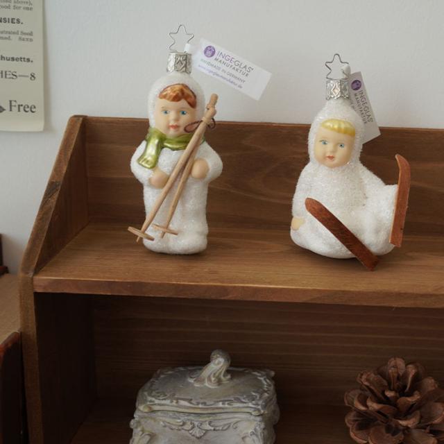 クリスマスツリー 飾り オーナメント INGE-GLAS MANUFAKTUR [雪のこどもたち] 雪だるまとこども 10.5cm[10035S010]