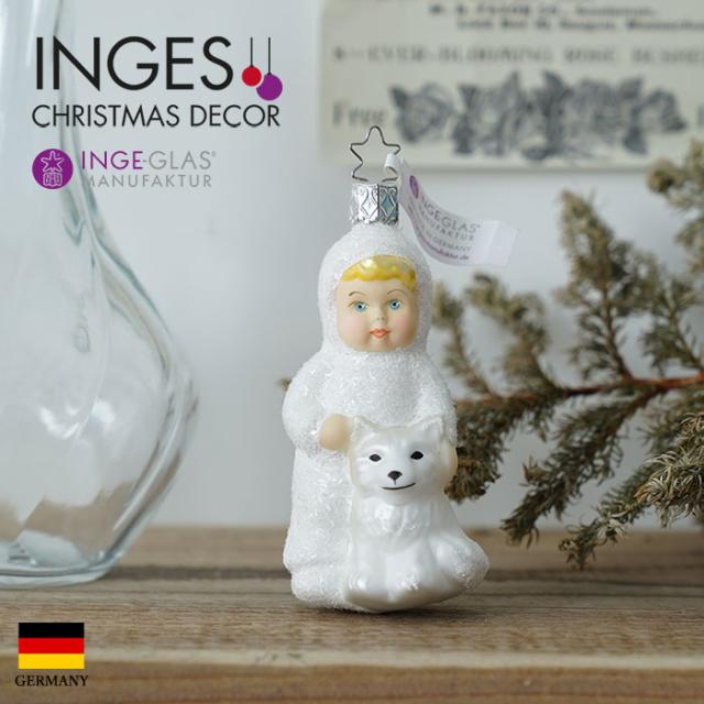 クリスマスツリー 飾り オーナメント INGE-GLAS MANUFAKTUR [雪のこどもたち] 雪だるまとこども 10.5cm[10043S021]