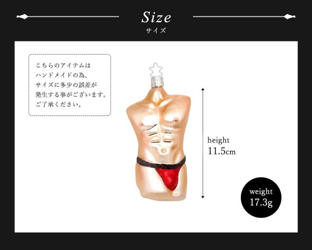 ★オーナメント ドイツINGE-GLAS MANUFAKTUR(インゲ・グラス)の CHRISTMAS VISIONSライン Manner-Torso [メンズトルソー レッド×ブラックパンツ] ハンドメイドオーナメント オーナメント単品販売です。 ドイツINGE-GLAS MANUFAKTUR(インゲ・グラス)の商品です。 サイズは高さが約 11.5cm です。 遊び心のあるオーナメントとなっております。 |