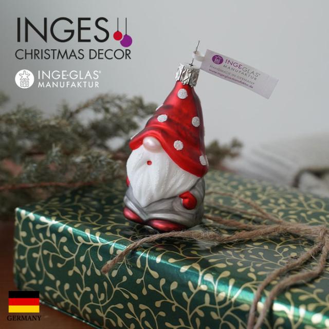 クリスマスツリー 飾り オーナメント INGE-GLAS MANUFAKTUR 顔が見えない赤い帽子のノーム レッド 9cm[10012S019]