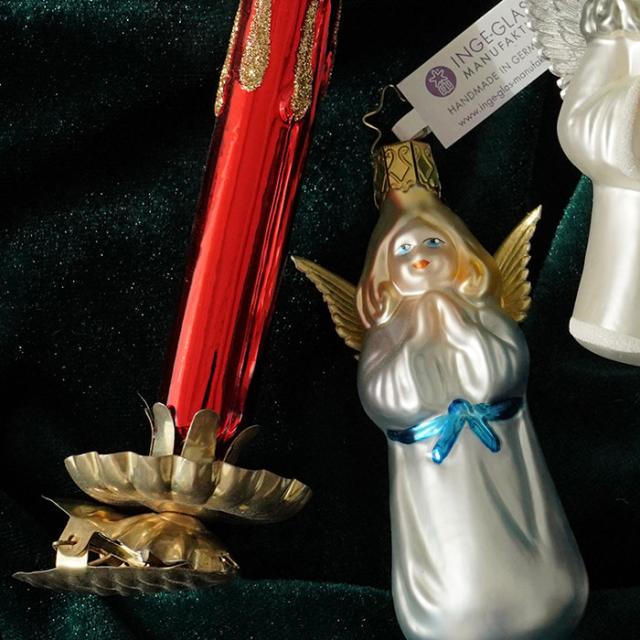 伝統的なドイツの工芸地域、ドイツノイシュタットのコーブルクにあるクリスマスオーナメントの名門といわれる老舗メーカーがINGE-GLAS社です。 高品質なガラス吹きの技法は1596年まで遡ります。 INGE-GLASのクリスマスオーナメントは「クリスマスジュエリー」ともいわれています。 熟練のガラス職人が愛情を込め、伝統的な手法で1品1品ハンドメイドで細部まで丁寧に作り上げるハンドクラフトオーナメントです。 INGE-GLASのオーナメントの発色は他のオーナメントにはない唯一無二の美しさです。 Inge-Glasのキャップはスタークラウンが特徴です。ドイツ国内で作られたInge-Glasのオーナメントは必ずスタークラウンです。 キャップに“Made in Germany”の刻印があります。 |
