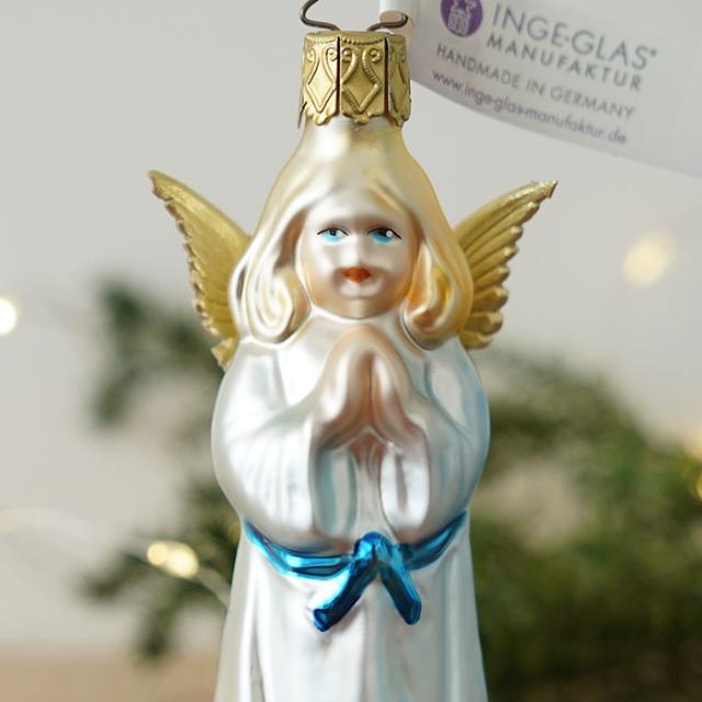 クリスマスツリー 飾り オーナメント INGE-GLAS MANUFAKTUR 星の銀貨(スターマネー)の女性 ホワイト 10.5cm[10208S019]