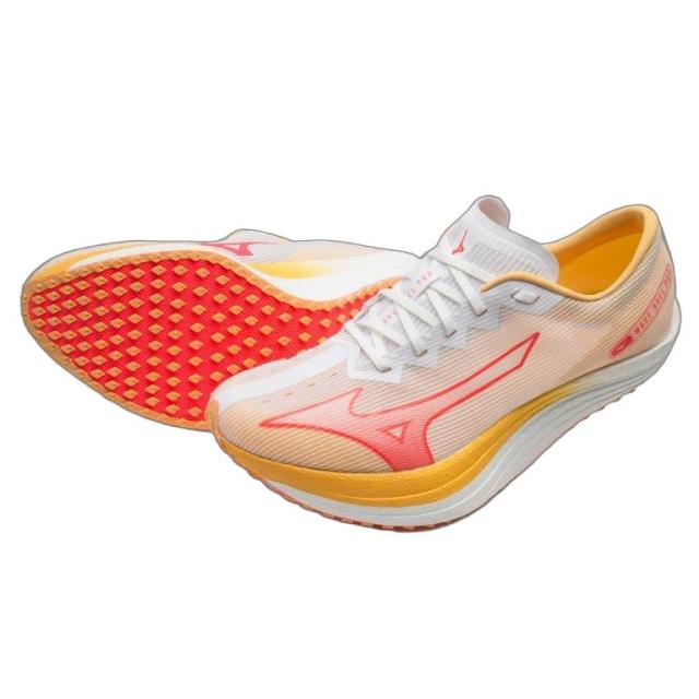 ミズノ ウエーブデュエル PRO 陸上競技 ランニングシューズ メンズ ホワイト×ピンク×イエロー U1GD220003