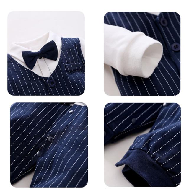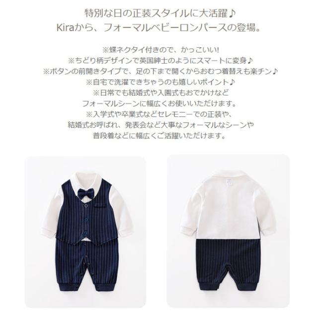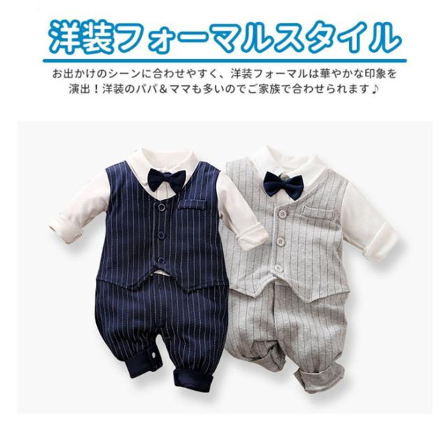 結婚式や入園式などにおすすめ!蝶ネクタイとベストでフォーマル風の正統派の長袖カバーオール!