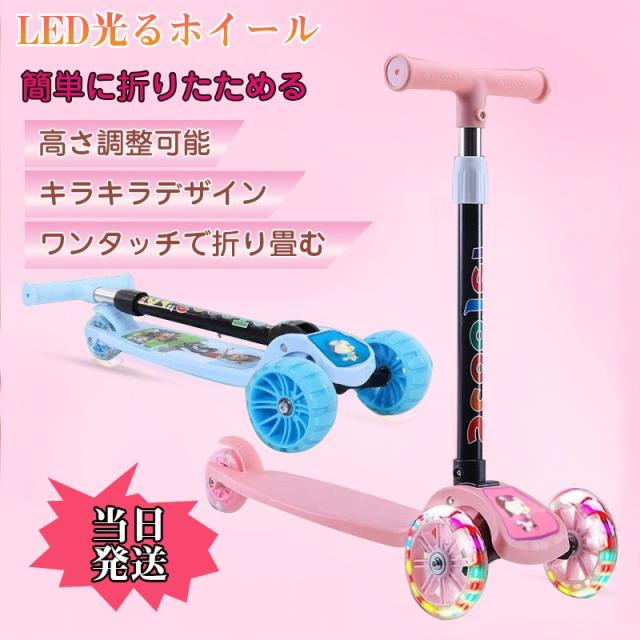 ★当日発送★ キックボード キックスクーター 折り畳み 持ち運び便利 光るホイール こども 3輪 子供用 キックスクーター 光るホイール 送料無料