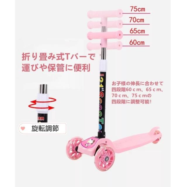 <関連ワード>キックボード こども 3輪 子供用 キックスクーター 軽量 持ち運び便利なベルト付き LED 光るホイール 後輪ブレーキ お子様の伸長に合わせて四段階調整可能 60cm、65cm、70cm、75cmの四段階に調整可能!
