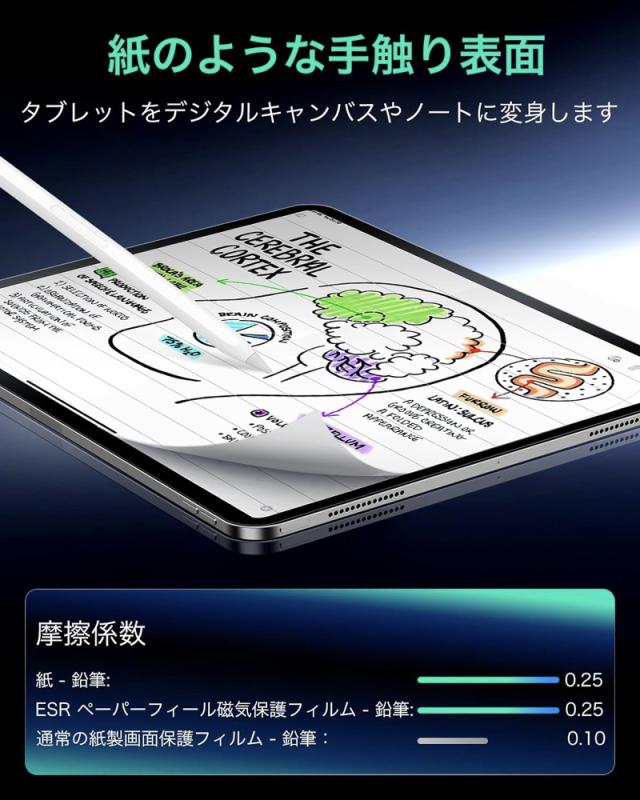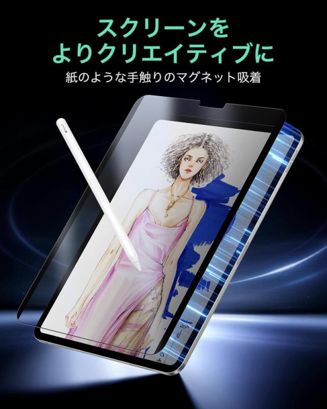 ESR iPad 第11世代 A16 第10世代 iPad Air13 Air11インチ iPad Air 5/4 iPad Pro 11インチ Pro13インチ Pro12.9インチ (第6/5/4世代)用 ペーパーライクフィルム 着脱式 マグネット 保護フィルム 紙のような書き心地 取り外し可能 ペーパーフィルム