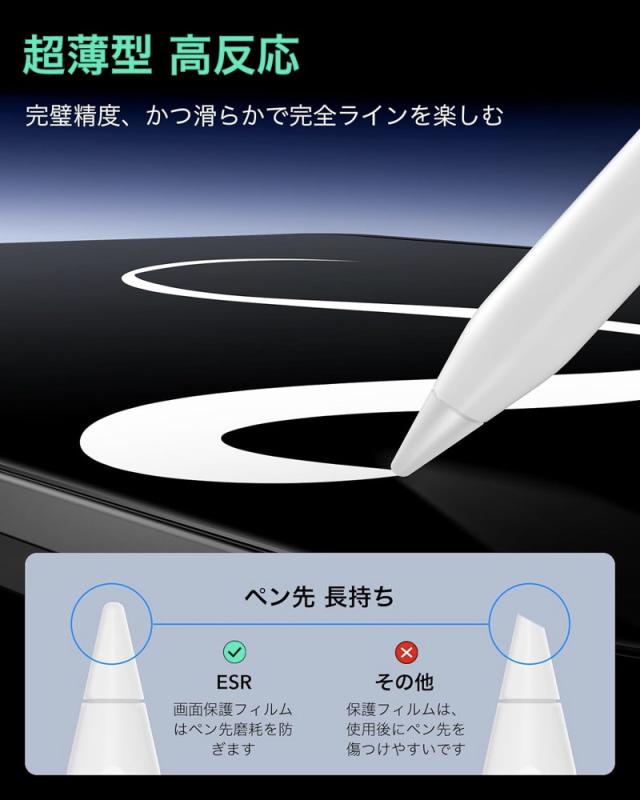 【Pencil&Face ID対応】わずか0.13mmの厚さのため、Pencil使用時でも、高いタッチ感度を実感できます。保護フィルムはフロントカメラとマイクに干渉しないよう切り抜いてあるため、音質やFace IDの機能に影響を与えません。【指紋防止&光反射防止】マットな表面は、指紋を効果的に防ぎ、人工光・自然光の反射も軽減することができます。 【割れ防止PET素材】柔軟なPET製のフィルムのため、ひび割れることもなく装着も簡単です。【ラクラク貼り付け】詳細な説明書と完全インストールキットを付属しているので、ストレスフリーで簡単楽々に装着できます。