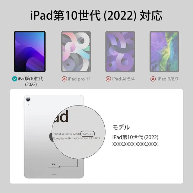 | 対応機種 | ・iPad Pro 13インチ (M5/M4) ・iPad Pro 11インチ (M5/M4) ・iPad Air 13インチ(M4/M3/M2)(2026/2025/2024年発売モデル) ・iPad Air 11インチ(M4/M3/M2)(2026/2025/2024年発売モデル) ・iPad 第10世代(2022) ・iPad Pro 11 インチ(2022/2021/2020/2018) ・iPad Air 第5世代 (2022, 10.9インチ) ・iPad Air 第4世代 (2020, 10.9インチ) ・iPad Pro 12.9インチ (2022/2021/2020/2018) |