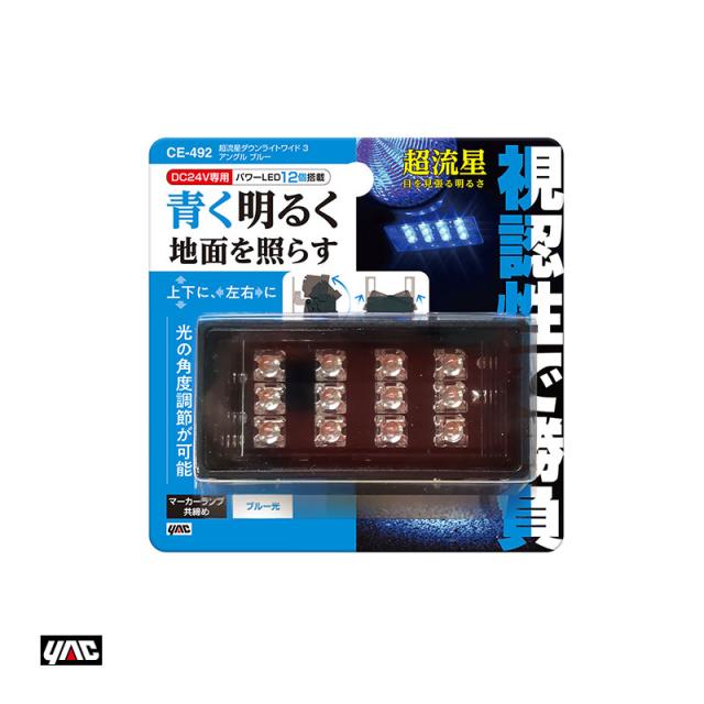 ヤック/YAC 超流星ダウンライトワイド 3 アングル ブルー LED12個 DC24V専用 トラック・大型車用 角度調節可能 1個入 CE-492
