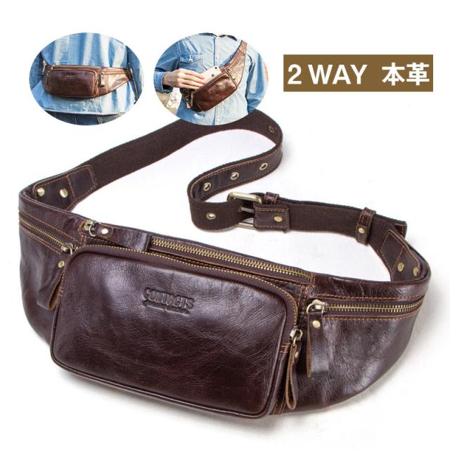 ウエストポーチ メンズ 牛革 本革 レディース ボディバッグ ウエストバッグ スマホポーチ 小さめ 斜め掛け ジョギング ウォーキ
