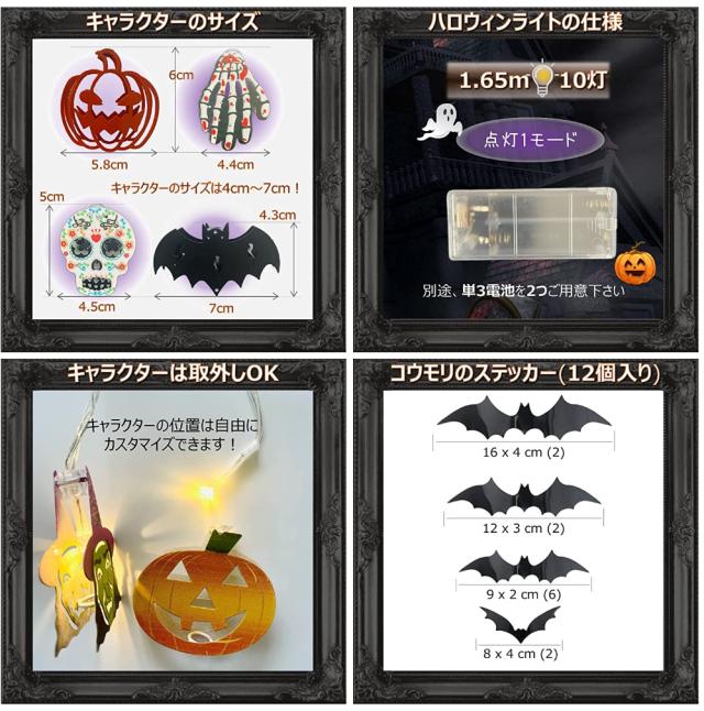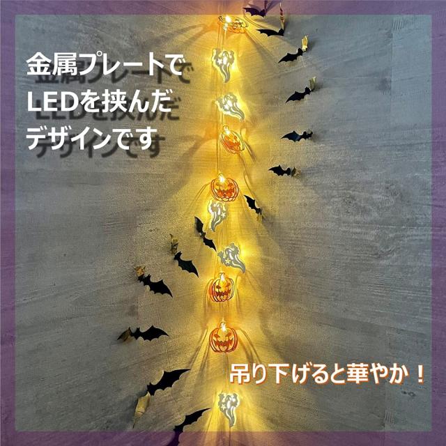ハロウィン 飾り かぼちゃ ライト 10灯1.65m 金属プレート コウモリステッカー12個付き 電池式 室内 パンプキン ゴースト LEDライト ジャックオランタン ライトアップ お飾りライト パーティー 装飾 ライト 記念日用 撮影用 お誕生日用 子供の日