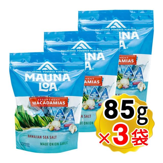 マウナロア マカデミアナッツ ミニアソートバッグ 85g×3袋セット 2種アソート ハワイアンシーソルト オニオン&ガーリック お菓子 ハワイ土産 輸入菓子