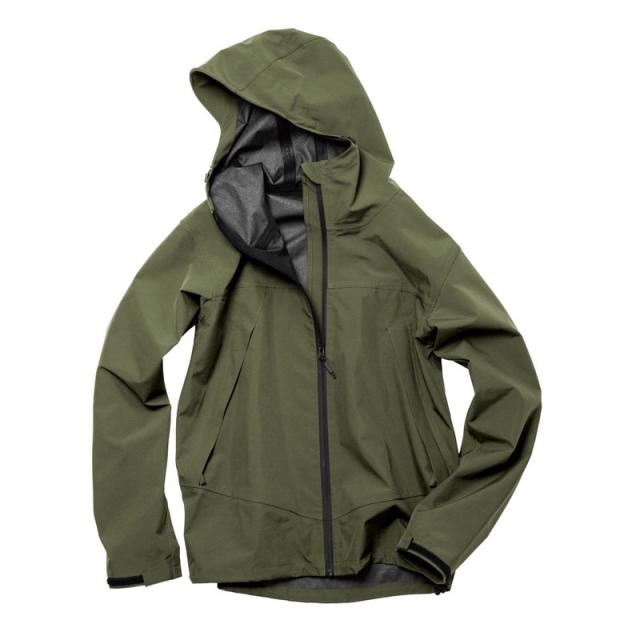 ●耐水圧20000mmH2O●透湿度:10000g/m2-24h●耐久撥水●UVカット●マルチストレージバッグ:25〜30L対応、ストレッチ性表生地+防水ラミネート+トリコット裏地の3層構造。