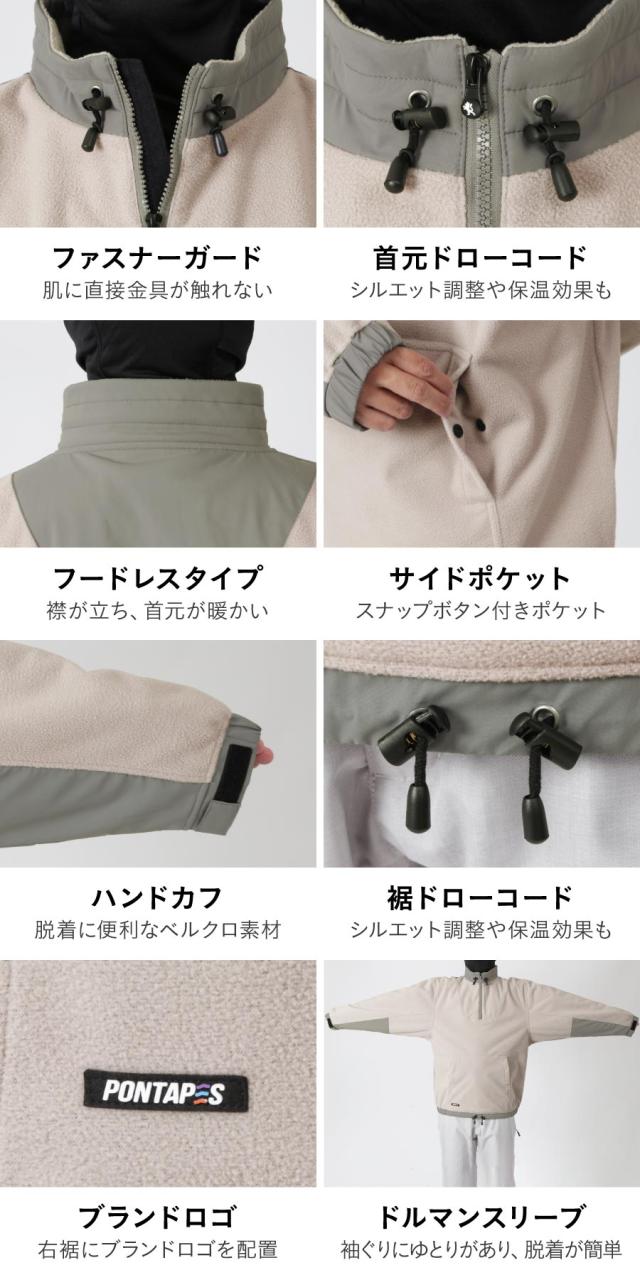 [SALE] スノーボードウェア インナー メンズ レディース スノーボード スキー フリース ボンディング 2レイヤー プルオーバー 防寒 冬 スノーインナー 登山 トレッキング アウトドア ゲレンデ 雪 PONTAPES PONF-200B