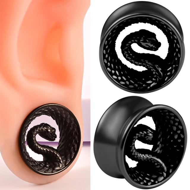 [0G 00G 12mm ボディピアス] 大蛇ダブルフレア(ブラック) ボディーピアス ステンレス 黒色 ヘビ へび スネーク スネイク 面白い かっこいい おもしろい ユニーク メンズ レディース 男性 女性 プレゼント プラグ ホール系 おしゃれ ギフト 大きい ダブルフレア型 人気 流行