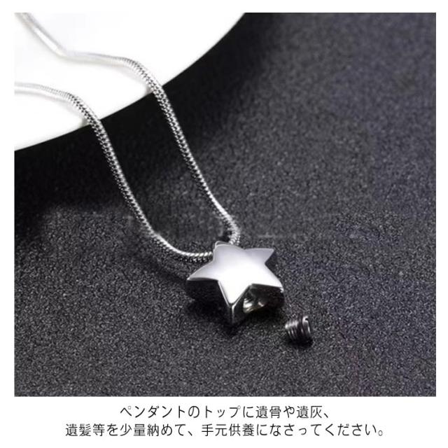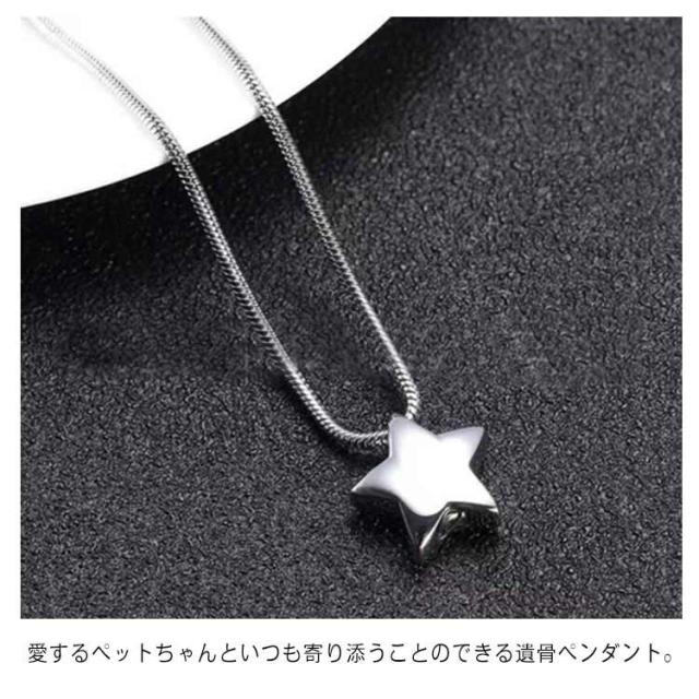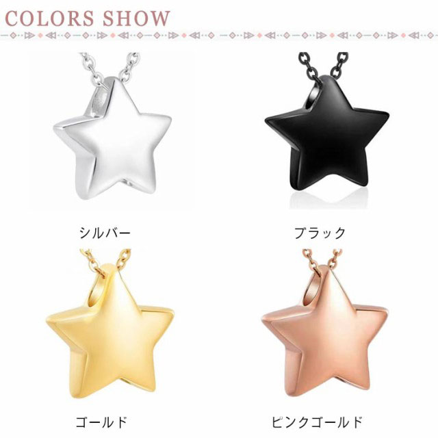 ペット用遺骨ペンダント メモリアルペンダント 星型 スター ネックレス 送料無料 元供養用 アクセサリー カプセル 金属アレルギー対応 遺灰 分骨 納骨 遺骨入れ シルバー ブラック ゴールド ピンクゴールド