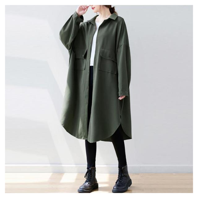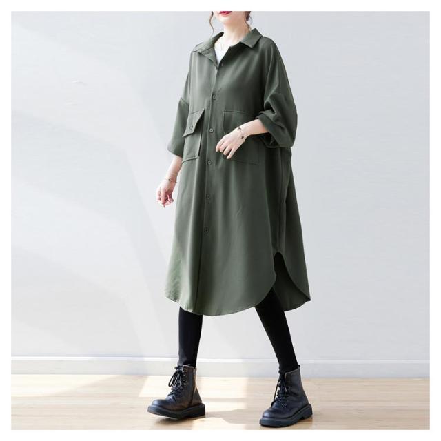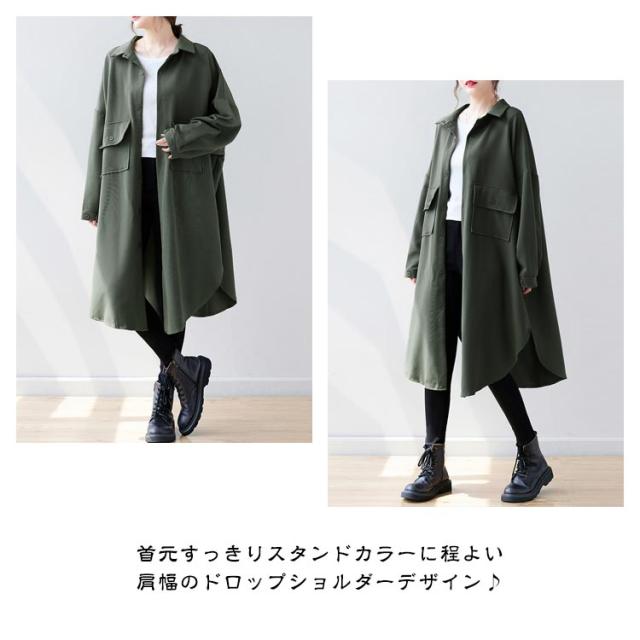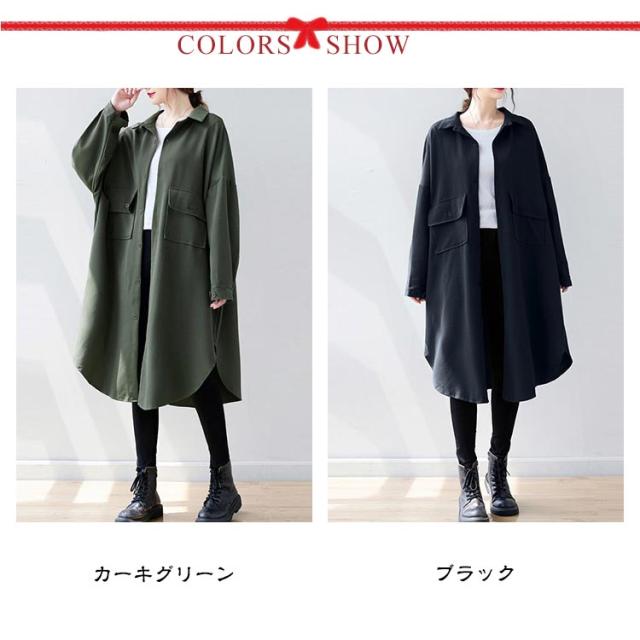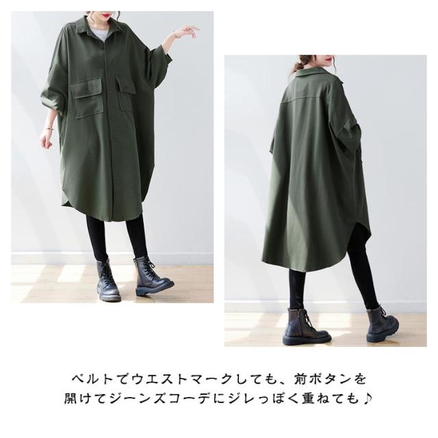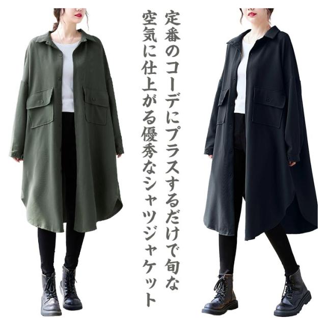 シャツワンピース ロング丈 2WAY 長袖 秋 ワンピース レディース カーディガン シャツワンピ ロングカーディガン 羽織り カジュアル 上品 無地 オーバーサイズ ビッグシルエット 韓国ファッション ブラック カーキグリーン