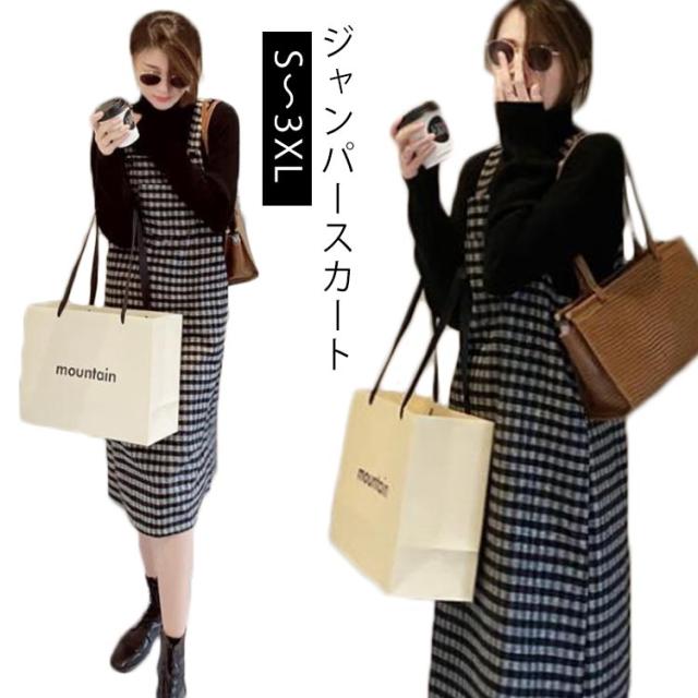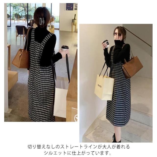ジャンパースカート サロペット キャミワンピース レディース キャミワンピ ミモレ丈 ワンピース サロペットスカート オールインワン オーバーオール シンプル 重ね着 可愛い チェック柄 春 秋 冬