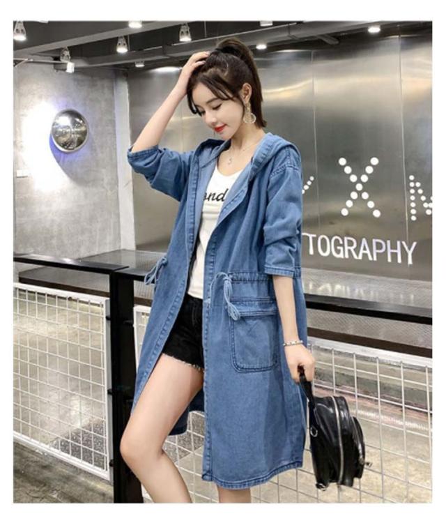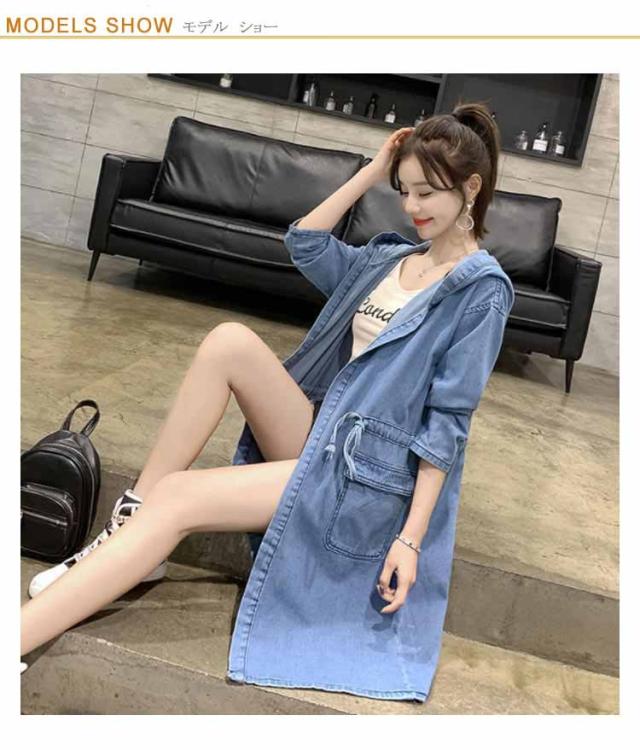 【送料無料】コート デニムコート ミドル丈 レディース デニムジャケット デニム パーカー フード付き 前開き ライトアウター 薄手 大人 春 秋 冬 カジュアル おしゃれ 大きいサイズ 20代 30代 40代 50代