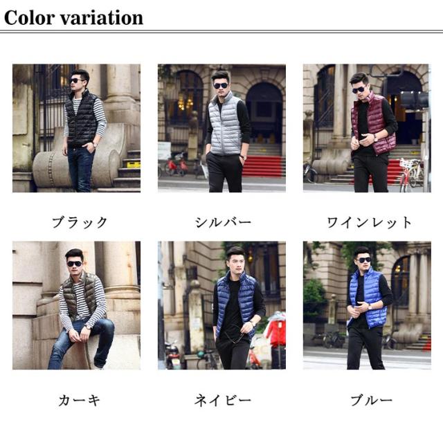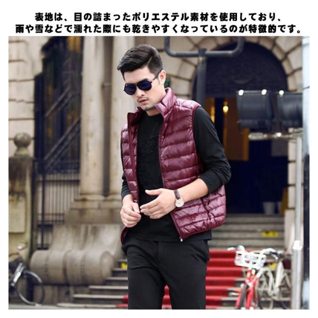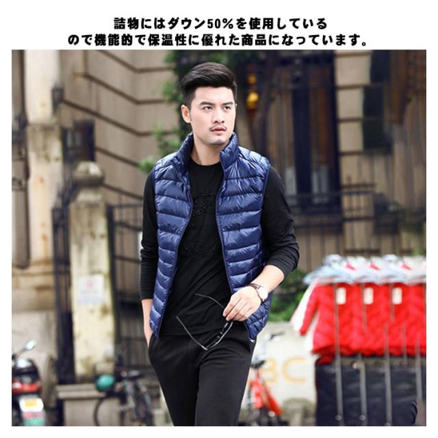 ダウンベスト チョッキ メンズ ノースリーブ ダウンジャケット ダウン50% 中綿ベスト アウター ライトダウン 秋冬服 羽織り 袖なし スタンドカラー 大きいサイズ 純色 紳士 普段着