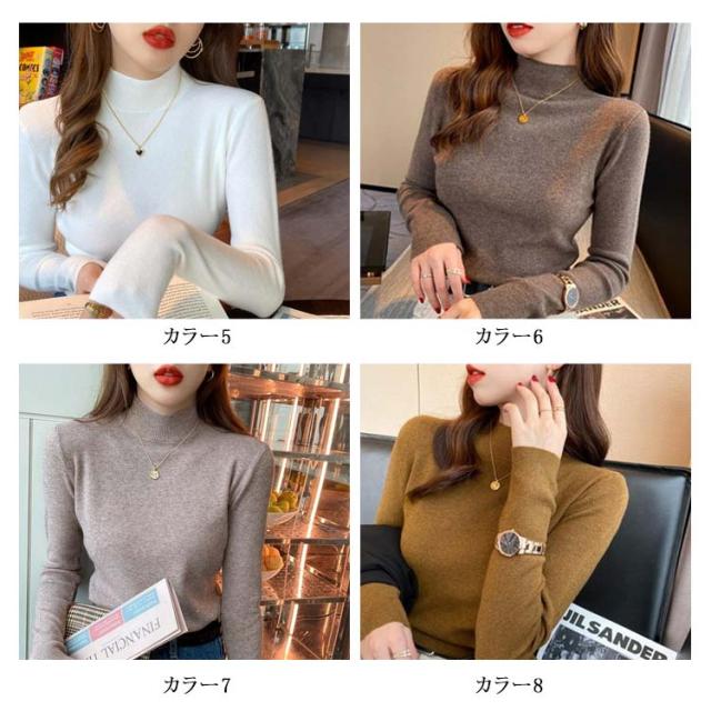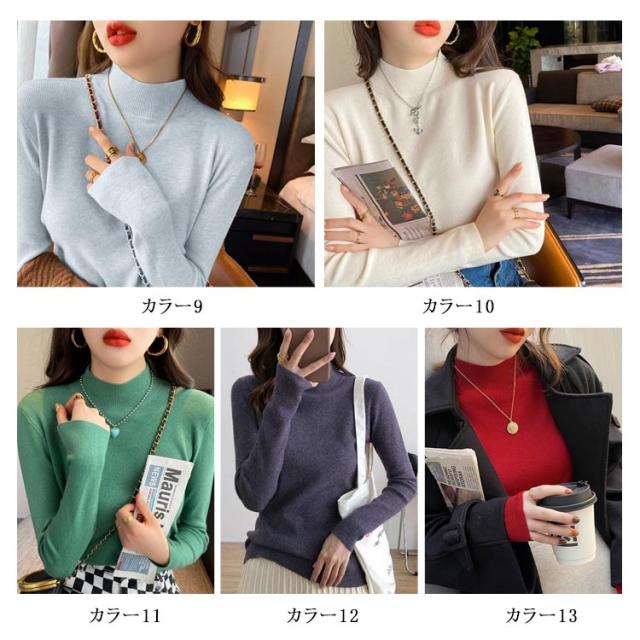 全13色! 長袖カットソー レディース カットソー ニット ハイネック 長袖 無地 トップス インナー 無地カットソー 綿 ネックカットソー タートルネック Tシャツ インナートップス ロンT 無地 コットン 大きいサイズ カジュアル 体型カバー 送料無料
