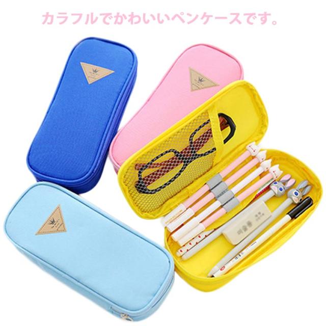 | カラフルでかわいいペンケースです。 コンパクトなのに大容量。 シンプルなデザインなので女の子にも男の子にもお勧めです。 文房具や小物をまとめられるので持ち運びに便利です。 | |
