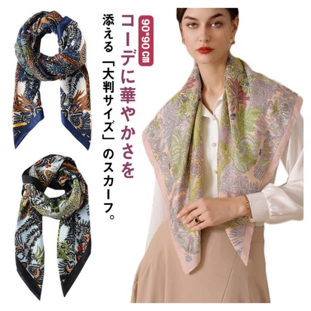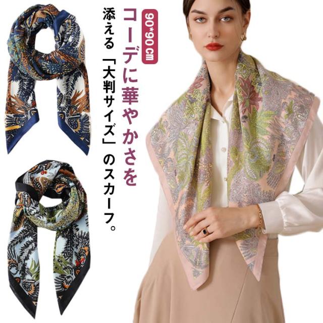 スカーフ シルクタッチ 90cm レディース ストール 巻き方 大判スカーフ 一重巻き ネクタイ結び 三角ドレープ巻き 夏 誕生日プレゼント 記念日ギフト 母の日 敬老の日ギフト 還暦 贈り物 全4色
