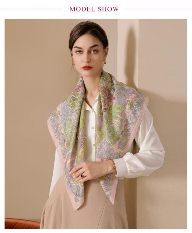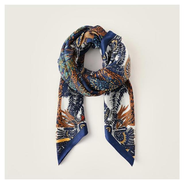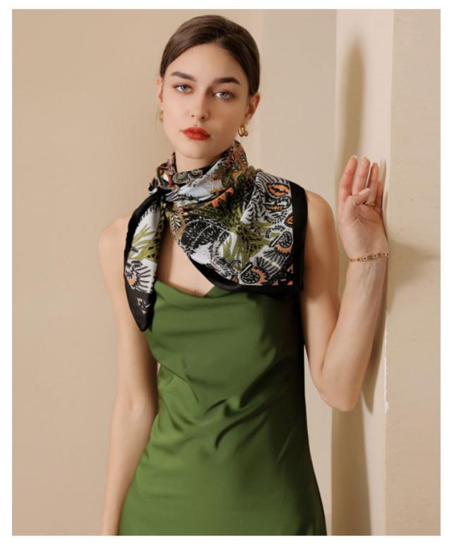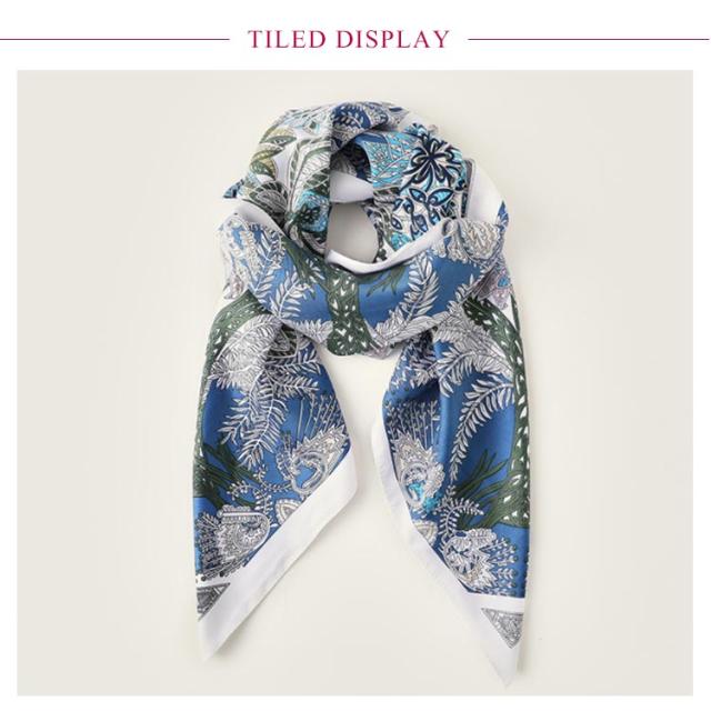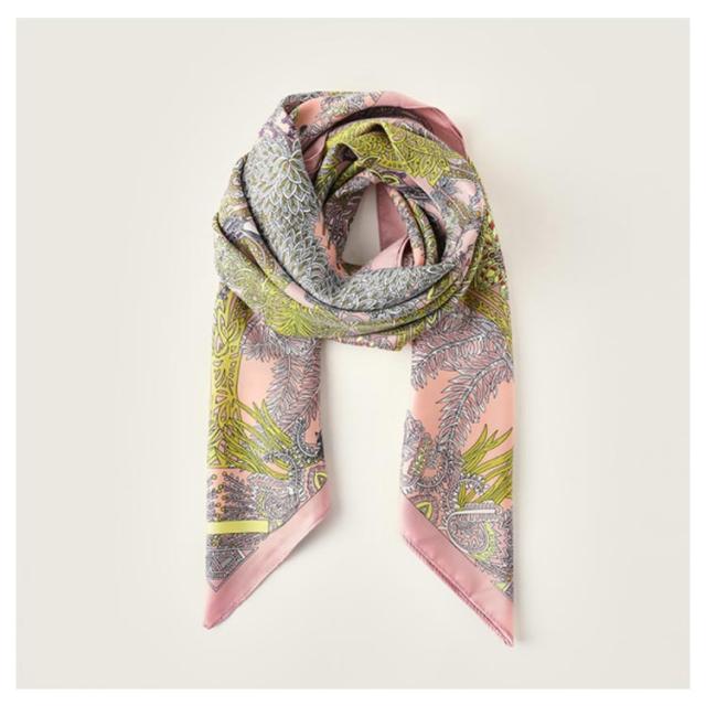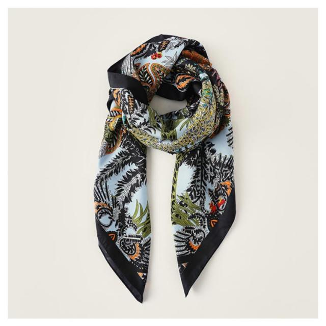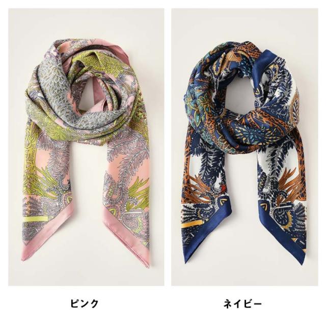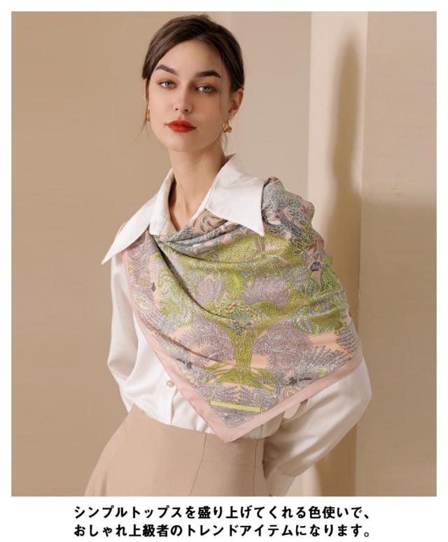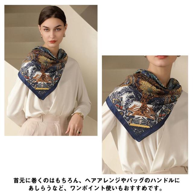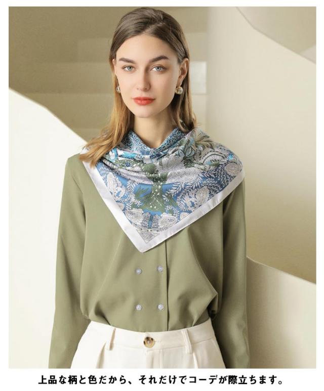 | コーデに華やかさを添える「大判サイズ」のスカーフ。 たっぷりとした90×90cmのサイズ感が使いやすい。 シンプルトップスを盛り上げてくれる色使いで、おしゃれ上級者のトレンドアイテムになります。 滑らかな肌触りのシルクタッチ仕上げ。 首元に巻くのはもちろん、ヘアアレンジやバッグのハンドルにあしらうなど、ワンポイント使いもおすすめです。 上品な柄と色だから、それだけでコーデが際立ちます。 | |