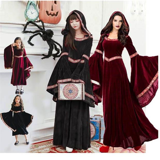 ハロウィン衣装 レディース 中世 17世紀 ゴシック様式 ビクトリア 風 ワンピース フード付き 大人 子供 かわいい 子どもワンピース
