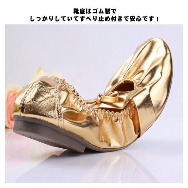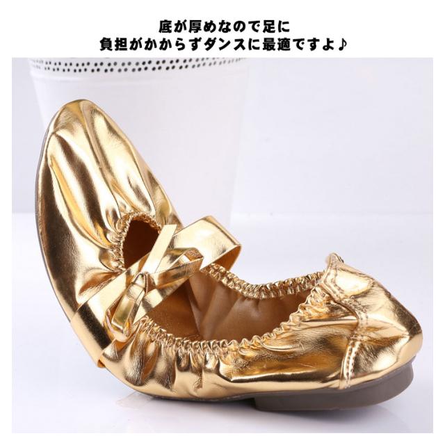 バレエシューズ ベリーダンス ダンス レディース 女性 ピアノの発表会 厚めのソール ゴムソール PUレザー ゴールド