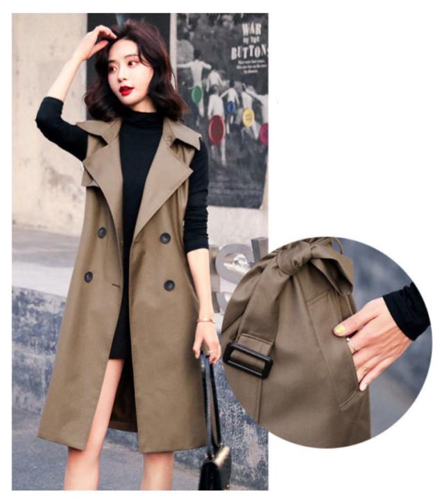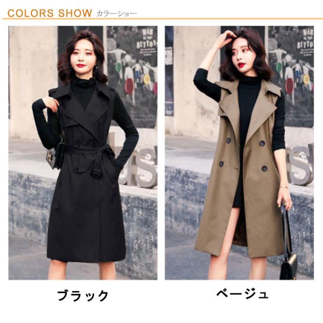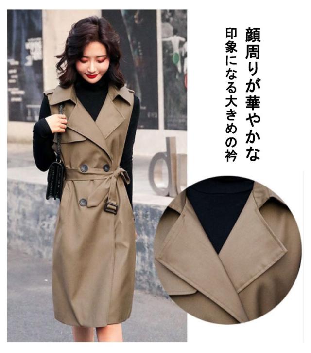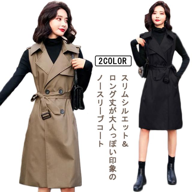 【送料無料】コート トレンチコート ロング丈 ノースリーブ レディース 40代 薄手 裏地付き ロングコート スリム 韓国風 大人 低身長 通勤 オフィス レイヤード コーデ シンプル 大きいサイズ 20代 30代 50代 おしゃれ