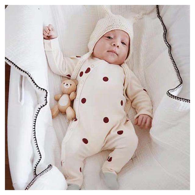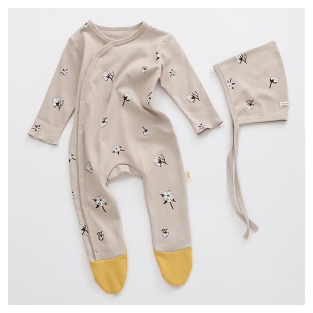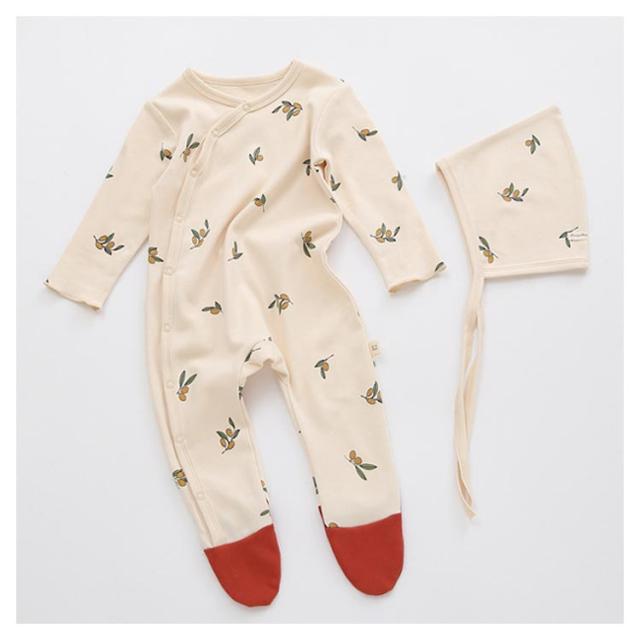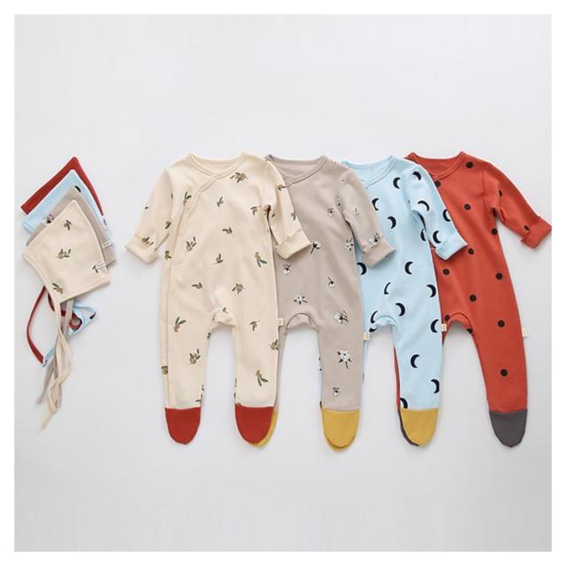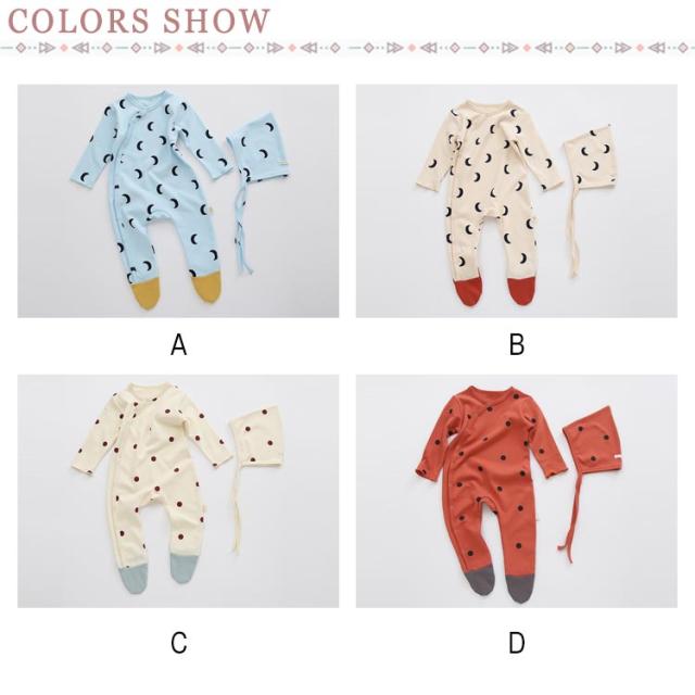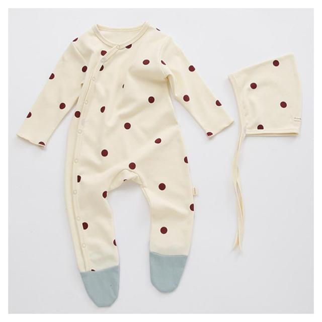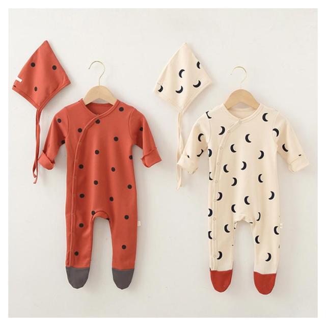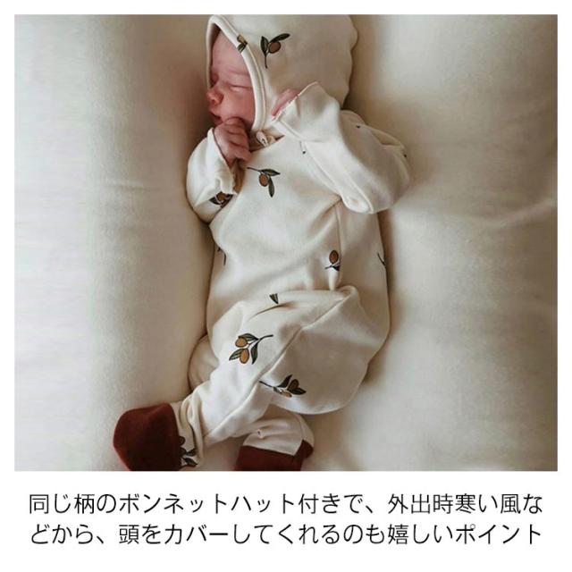 | ins映えしちゃう可愛いハット付きロンパース。 心地よい肌触りのコットンなので、赤ちゃんも大満足。 足先までしっかりカバーできるタイプ、足の冷え対策も◎ 動いても寝返りしてもお腹と足がでないからママも安心。 同じ柄のボンネットハット付きで、外出時寒い風などから、頭をカバーしてくれるのも嬉しいポイント。 新生児サイズから2歳までサイズ展開も豊富、出産祝いや誕生日プレゼントにもお勧め。 | |