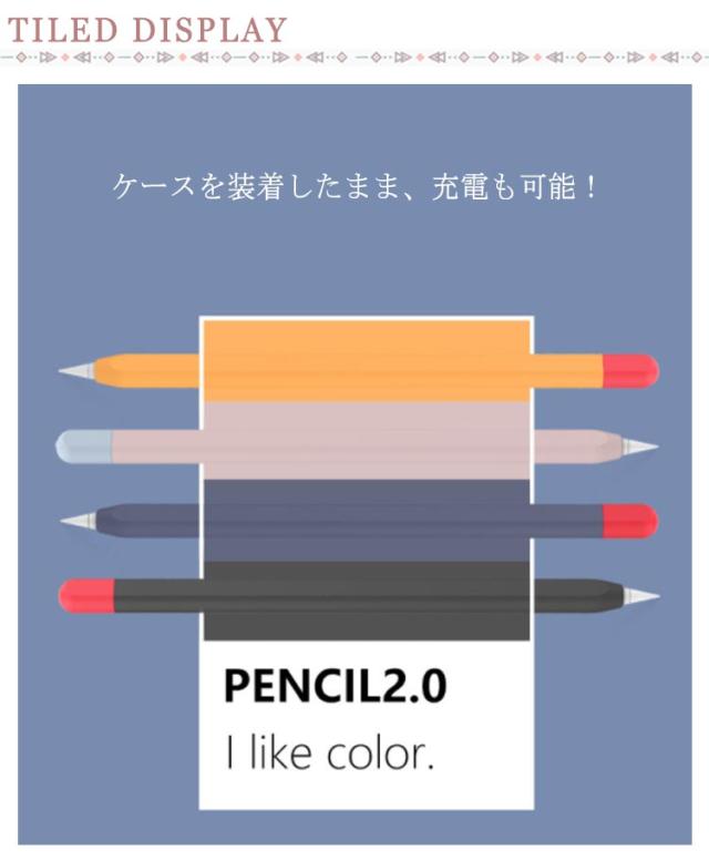 | Apple Pencilを汚れや傷から保護! ケースを装着したまま、充電も可能! 薄型デザインでアップルペンシルの使用感を損ないません。 鉛筆型のデザインでグリップ感が格段にアップ!また、机の上で転がるのを防ぎます。 全面を保護することで傷や落下から保護します。 高品質なシリコンで作られ、柔らかな握り心地を実現します。 | |