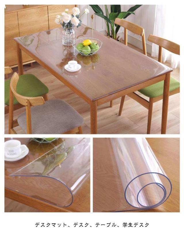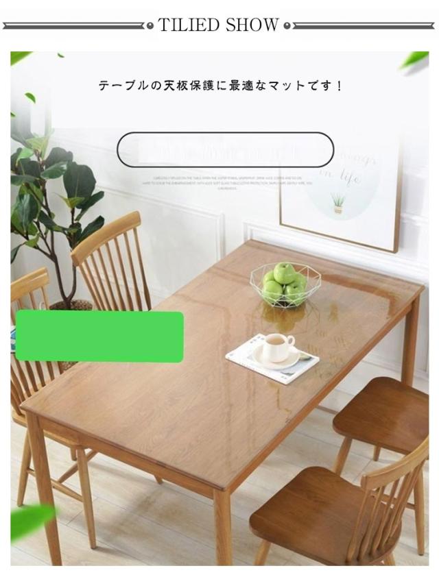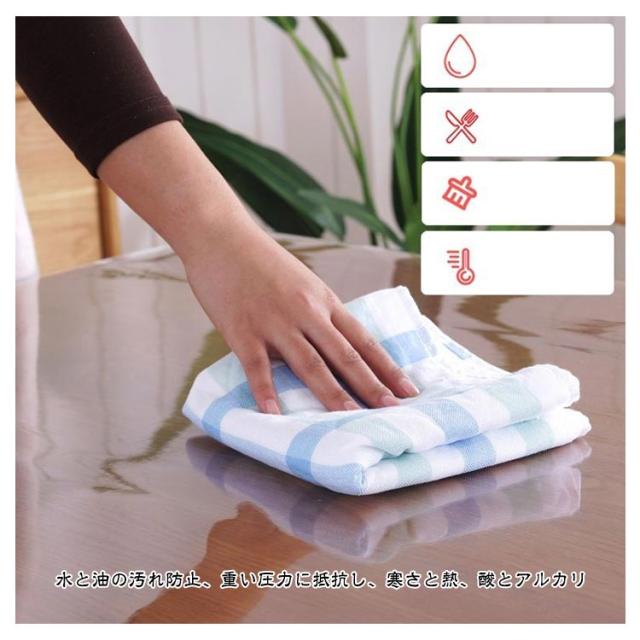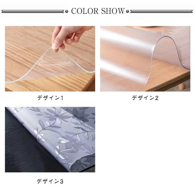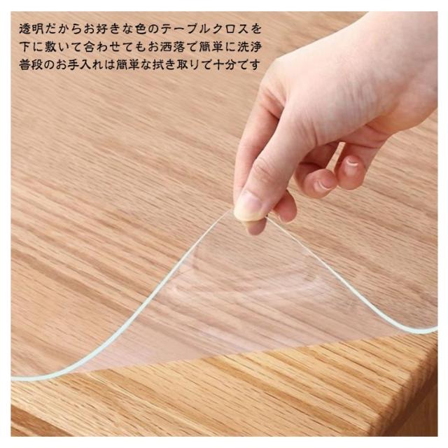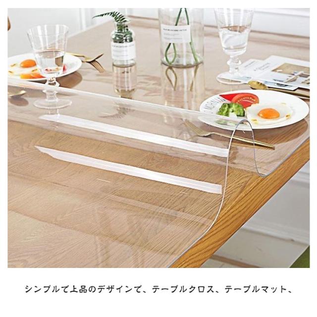 | 透明PVCテーブルクロス、シンプルで明るいお部屋を彩ります! 透明だからお好きな色のテーブルクロスを下に敷いて合わせてもお洒落で簡単に洗浄、普段のお手入れは簡単な拭き取りで十分です。 水と油の汚れ防止、重い圧力に抵抗し、寒さと熱、酸とアルカリ。テーブルの天板保護に最適なマットです! シンプルで上品のデザインで、テーブルクロス、テーブルマット、 デスクマット、デスク、テーブル、学生デスク、 学習机、ティーテーブル、ポーカー、アスレチックスなどに使用できます。 | |