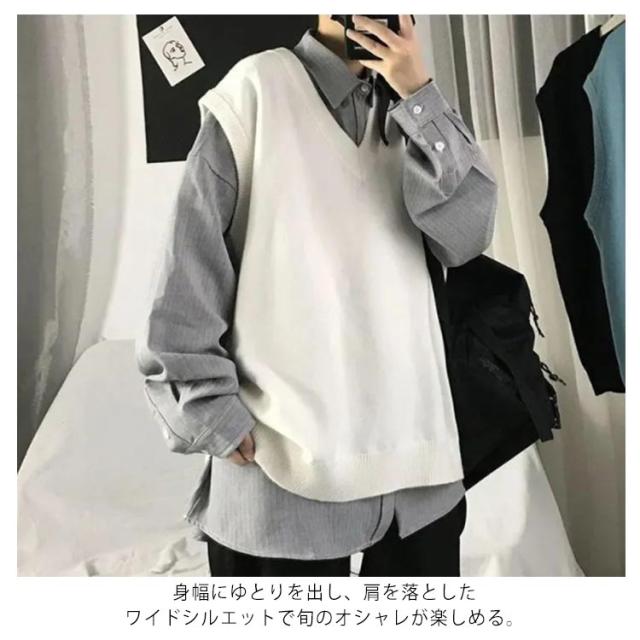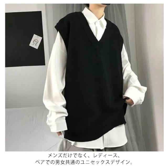 【送料無料】ニットベスト メンズ レディース レイヤード おしゃれ ゆったり 体型カバー 重ね着 オーバーサイズ 大きめ きれいめ カジュアル モード 韓国ファッション シンプル 無地 男女兼用 秋冬 カジュアル Vネック 通勤 通学