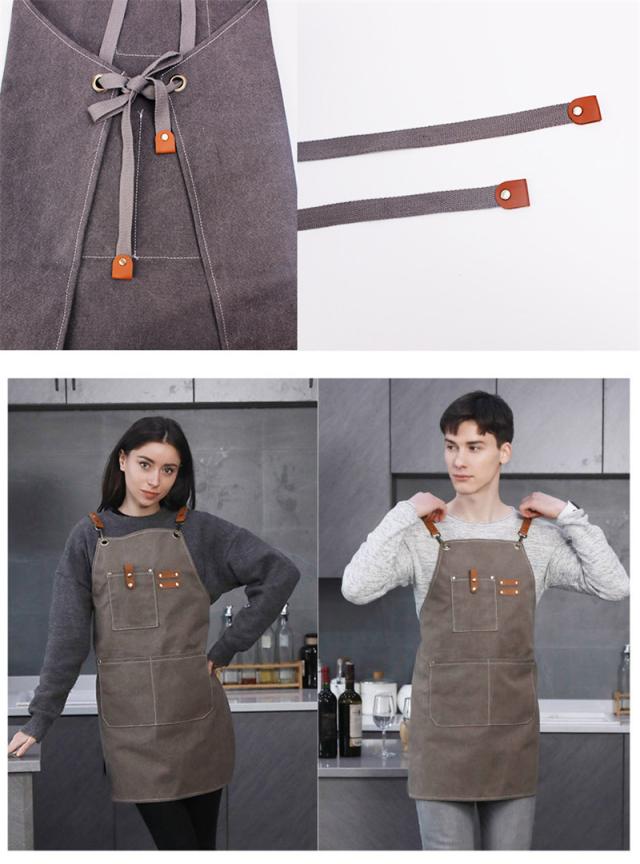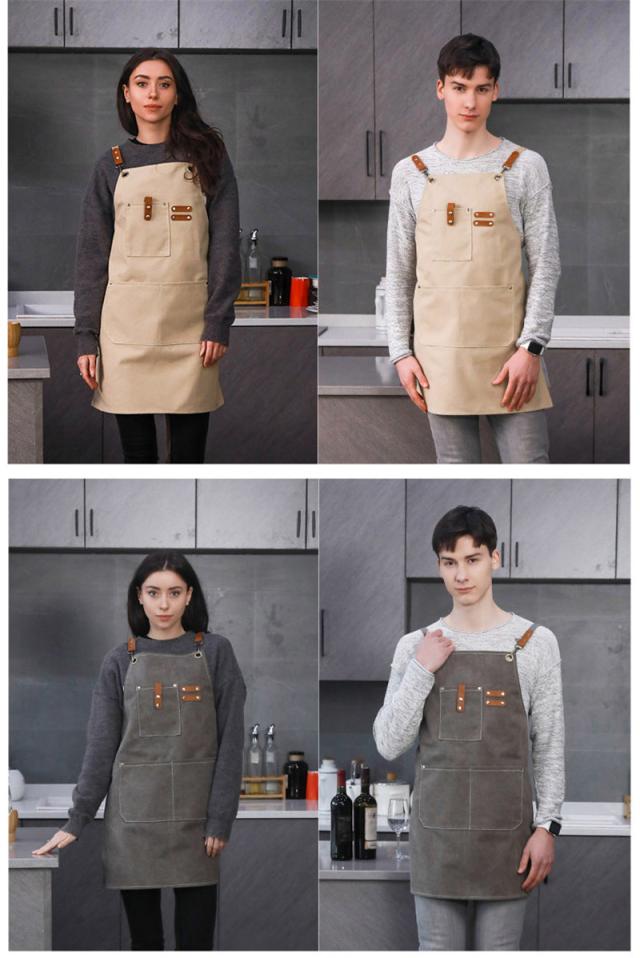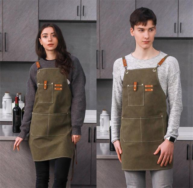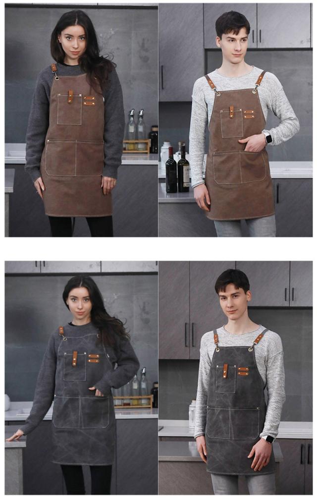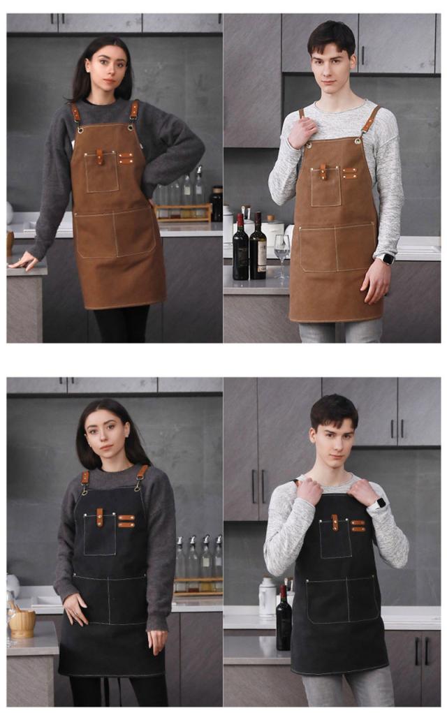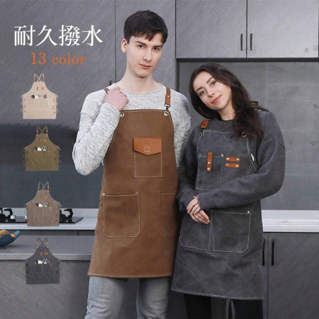 エプロン 耐久 撥水 おしゃれ キャンバス アウトドア ポケット付き カフェ 后首 キャンプ 職人 シェフ 園芸 無地 シンプル