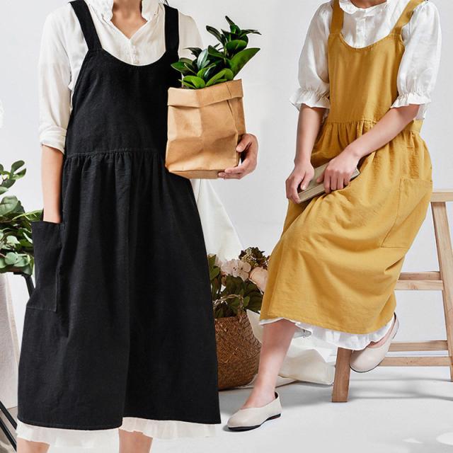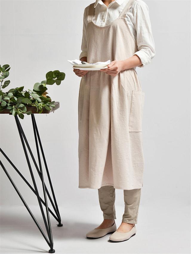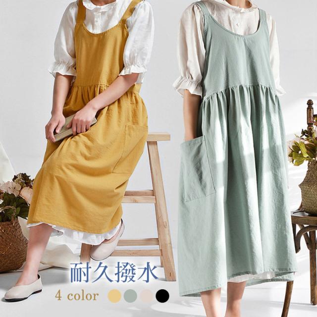 エプロン 耐久 撥水 おしゃれ レデイース 保育士 介護 シンプル ワークエプロン ワンピース 胸当て 北欧 大人 ポケット付き
