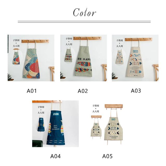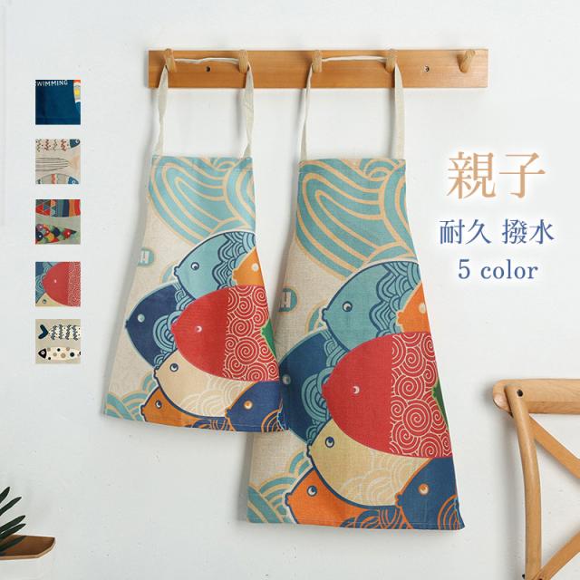 親子エプロン エプロン 撥水 おしゃれ お揃い ペアエプロン 子供用 大人用 和柄 リネンエプロン 料理教室 幼稚園 お手伝い プ