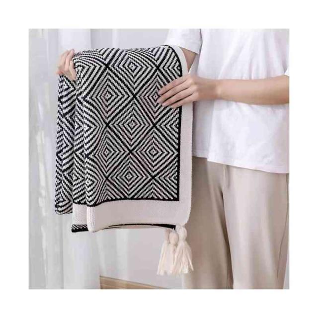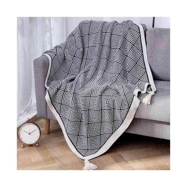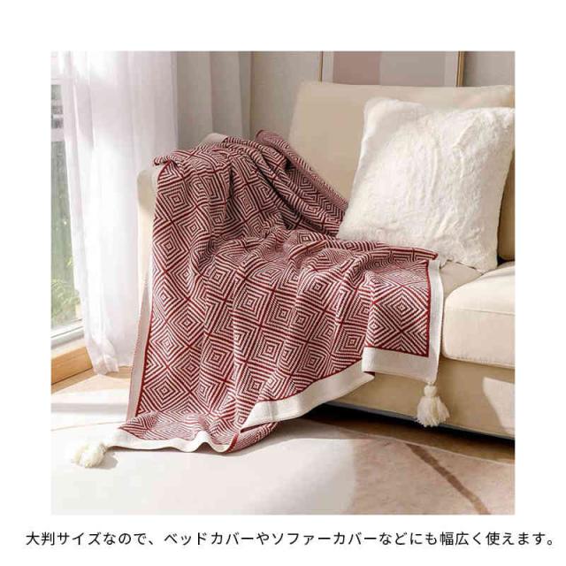 130*170cm ブランケット フリンジ付き 大判 マルチカバー ベッド おしゃれ 北欧 冷房対策 ソファー ニット マルチ カバー ベッドカバー チャコール かわいい シングル ソファーカバー かけるだけ ニットブランケット ひざ掛け ベット ベットスロー ベットカバー