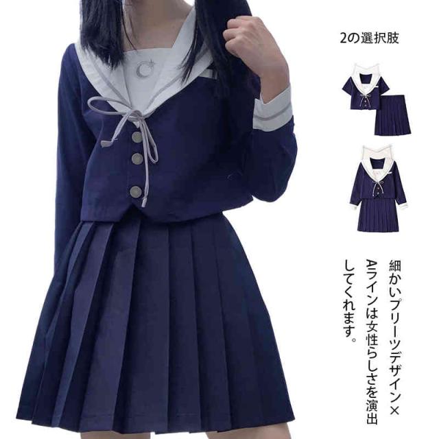 長袖学生服 セーラー服 女子JK制服 スカート 上下セット 半袖 長袖女子制服 コスプレ 高校生 コスプレ可愛い 衣装 JK服 学園祭 大人 レディース クリスマス ハロウィン セクシー コスチューム衣装 可愛い レディース 衣装 セーラー襟