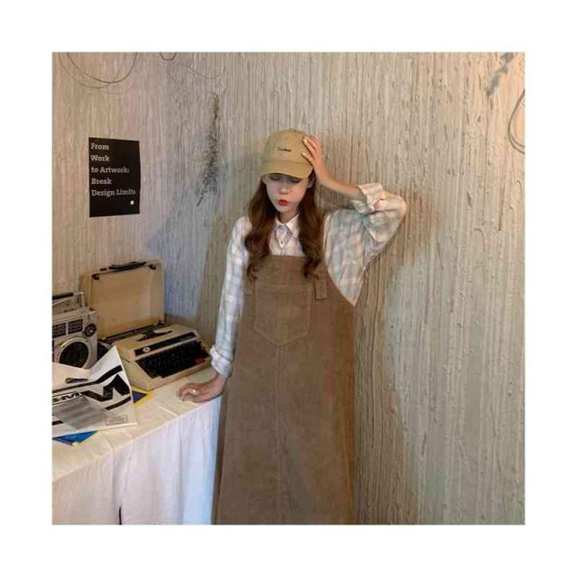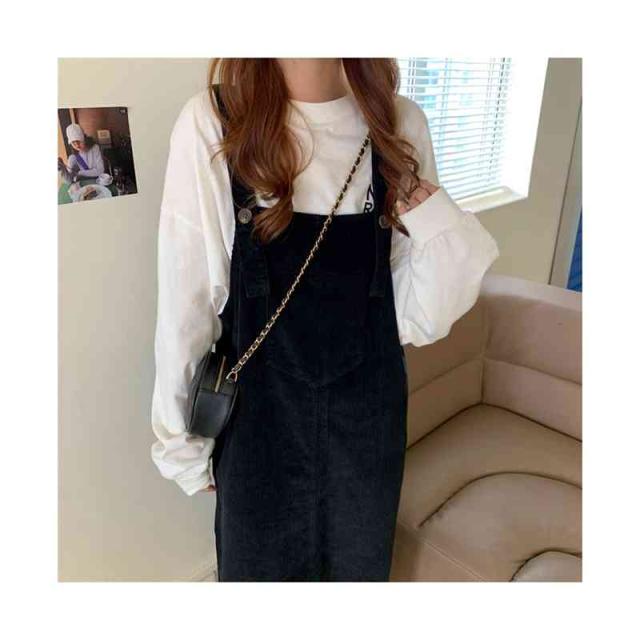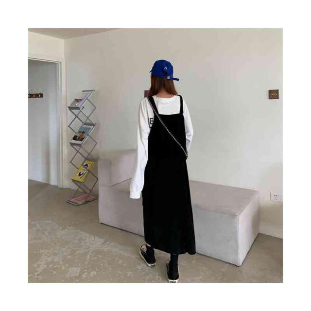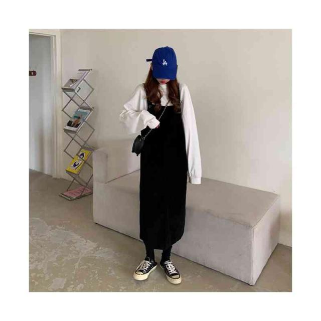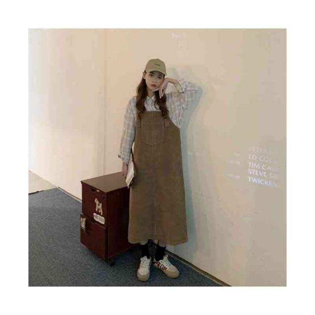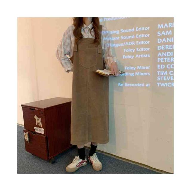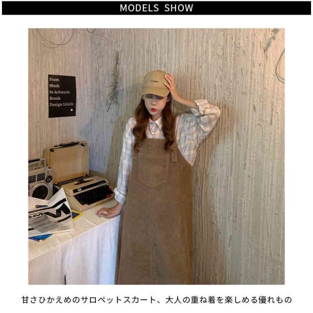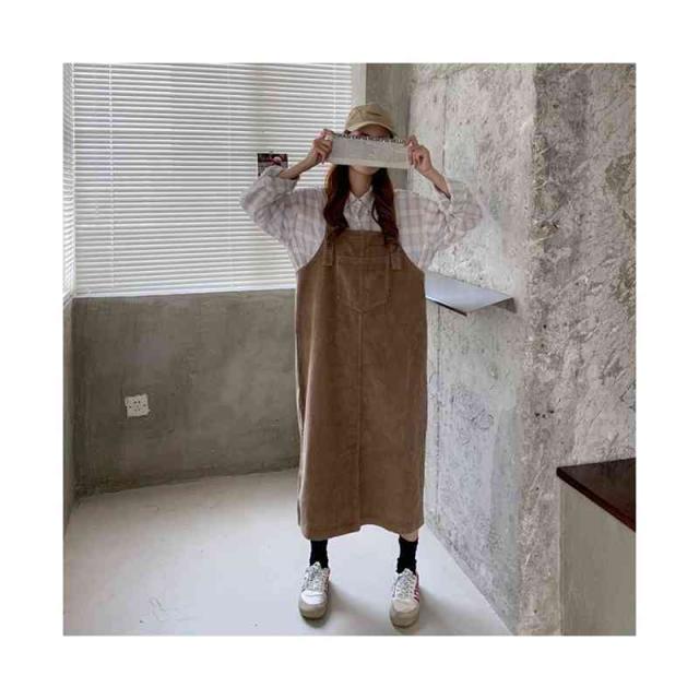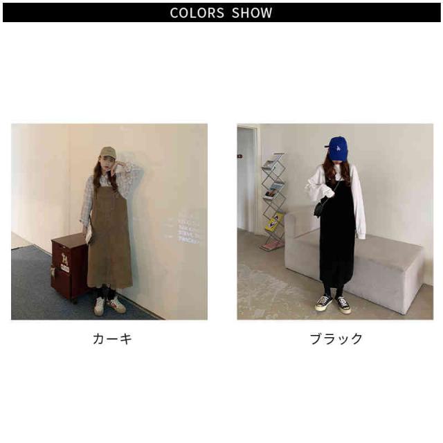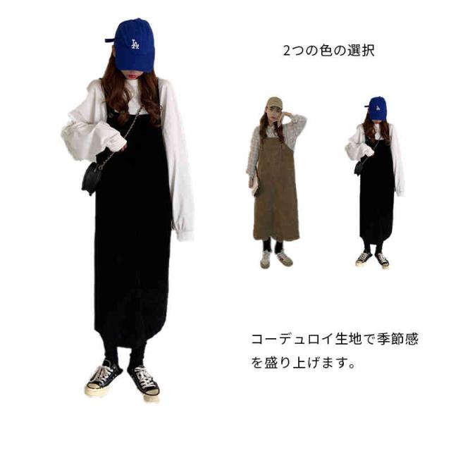 送料無料 ジャンパースカート サロペット コーデュロイ レディース キャミワンピース ロングワンピース ミモレスカート ノースリーブ ボートネック ゆったり オーバーオール カジュアル お洒落 クラシカル 重ね着 レイヤード 大人 可愛い