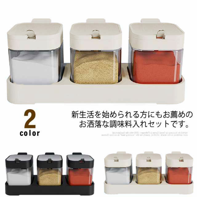 | 新生活を始められる方にもお薦めのお洒落な調味料入れセットです。 調味料ストッカー3個が付属しているので、料理によく使う砂糖や塩などを保存できます。 ラックが付きなので、調味料をこれ1つでスッキリ収納ことができます。 ぎゅっと閉まっていても、ワンタッチで簡単オープン、密閉性と操作性を兼ね備えた。 しっかり閉まって湿気・乾燥を防ぎ、調味料の鮮度を保ちます。 専用のスプーンもついて、容器の中に入れられます。 | |