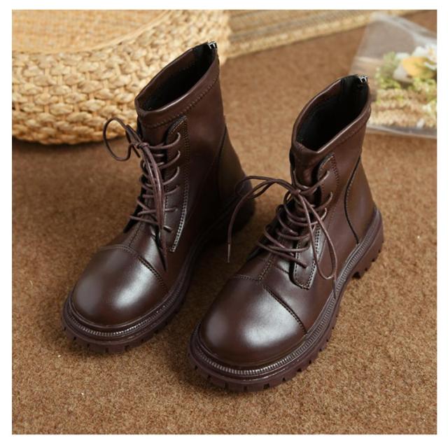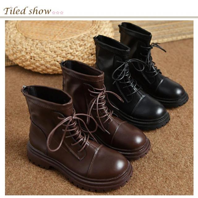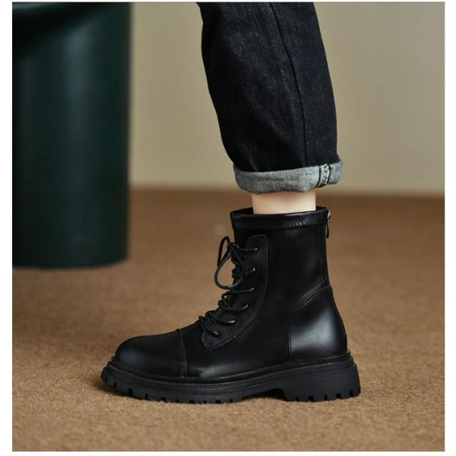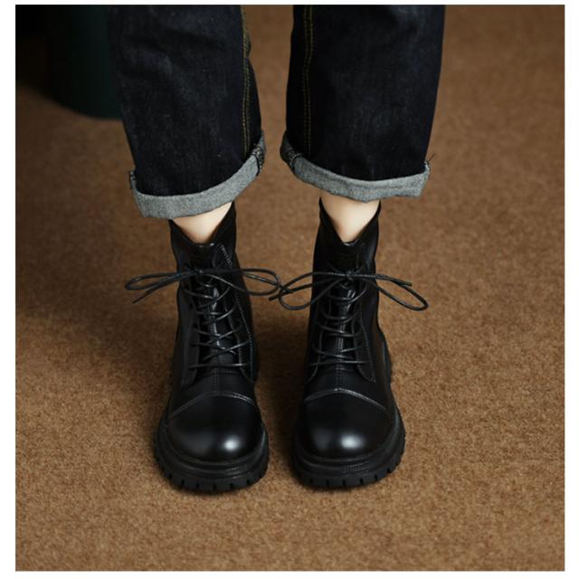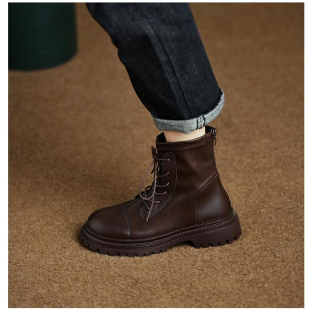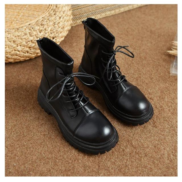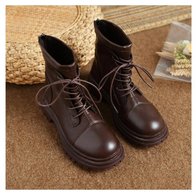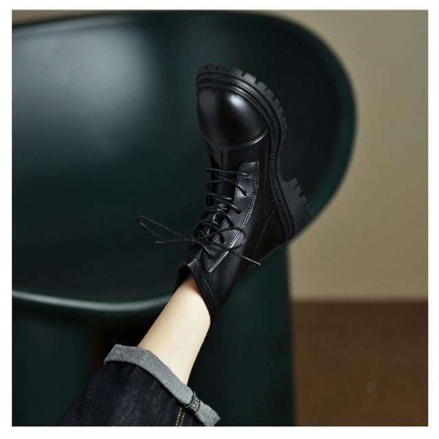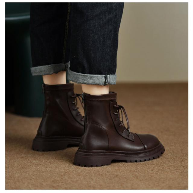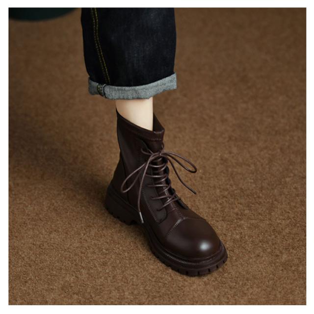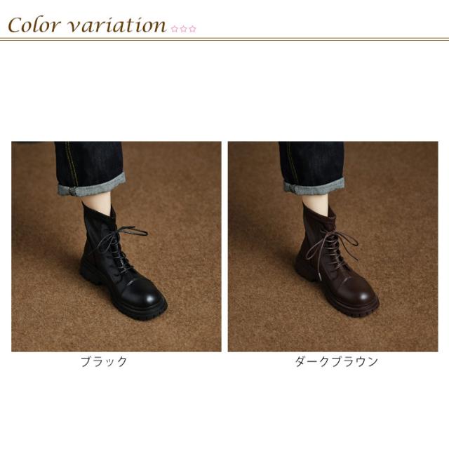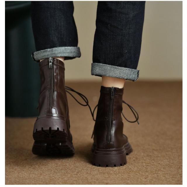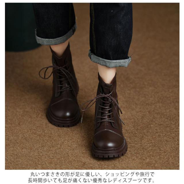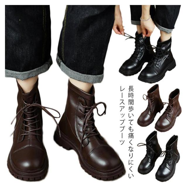 【送料無料】ブーツ レディース 厚底 ショート ラウンドトゥ おしゃれ きれいめ 太ヒール 安定感 歩きやすい 滑りにくい 疲れにくい ゆったり 快適 レースアップ 春秋冬 無地 シンプル 編み上げ ブーツ 通勤 オフィス 通学