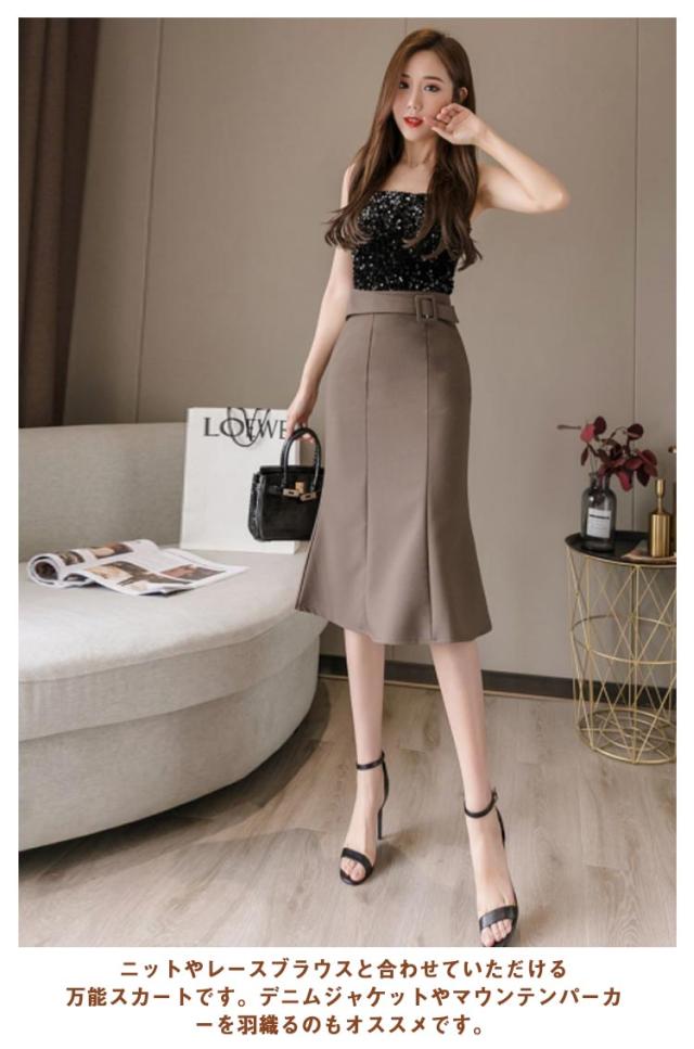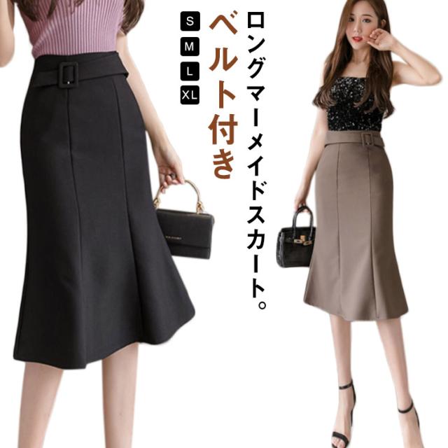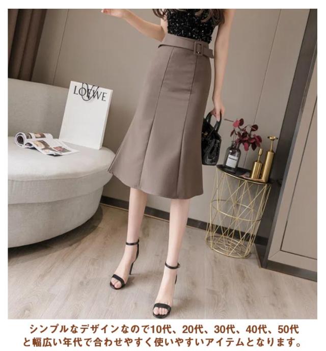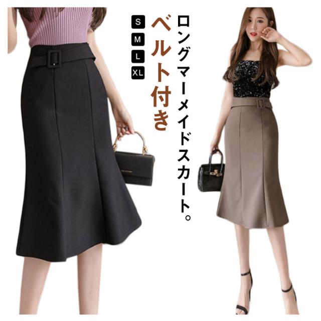 ロングマーメイドスカート タイトスカート 膝丈スカート シンプル 体型カバー 人魚マーメイドスカート 着痩せ 美脚 ハイウエスト Aライン フォーマルスカート ウエストベルト 上品 きれいめ おしゃれ デート 春 夏 秋 冬 女性 通勤 女子会 パーティー お出かけ 送料無料
