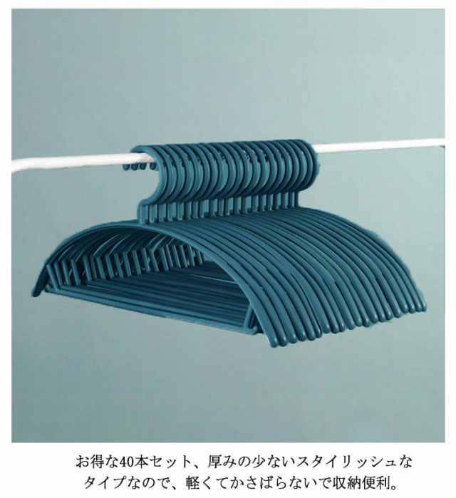 | PP材料が滑り止めの効果がよくて、どんな衣類を掛けても落ちる心配がありません。 丸みを帯びた肩ラインは通常のハンガーでは肩の出てしまうニットの型崩れ等も防止します。 お得な40本セット、厚みの少ないスタイリッシュなタイプなので、軽くてかさばらないで収納便利。 コート、洋服、キャミソール、スカート、タオル、またズボンにも対応できます。 是非、豊富なバリエーションからお部屋に合うハンガーをご選択ください! | |